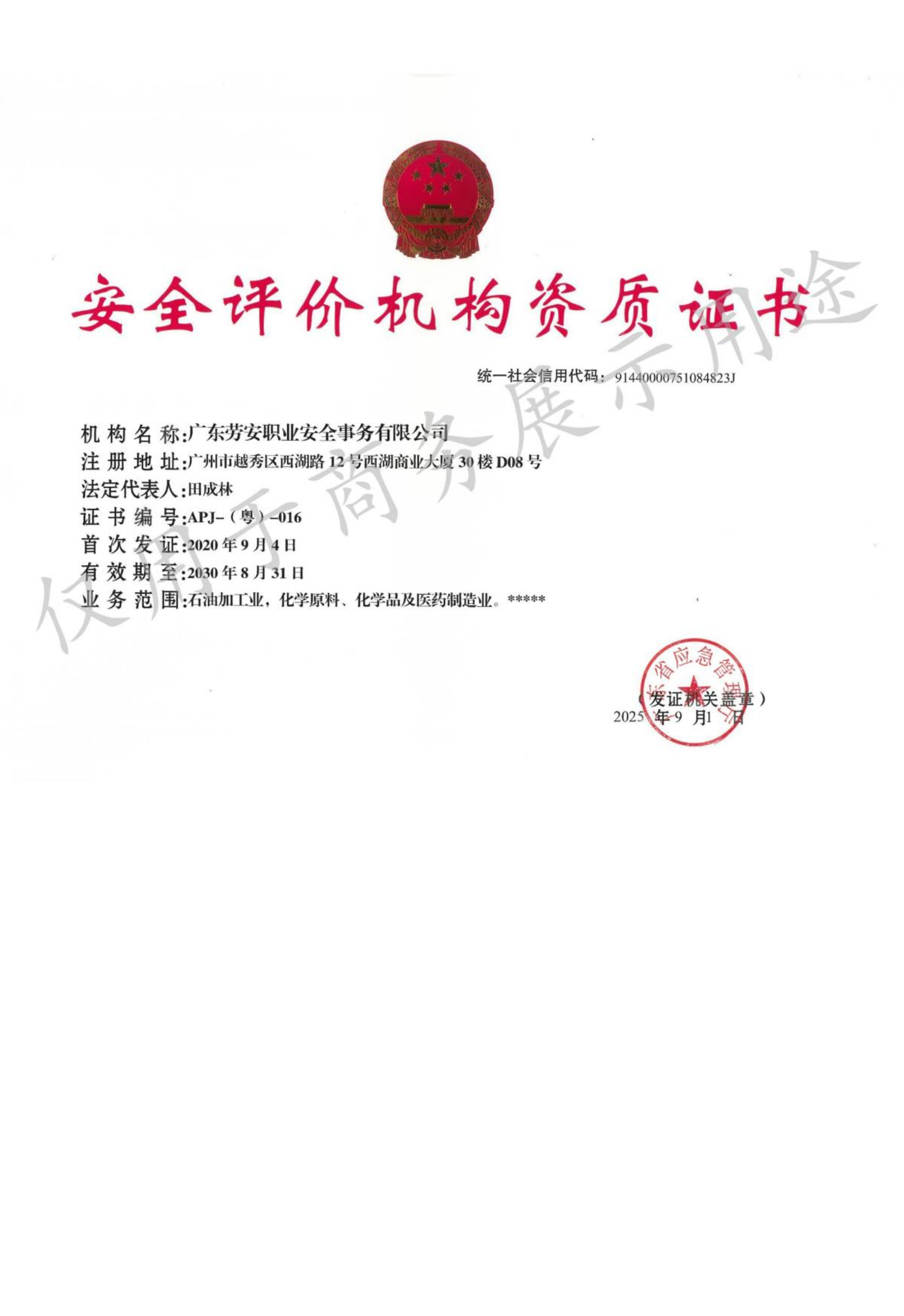 安全评价资质(资质编号:APJ-(粤)-016,)